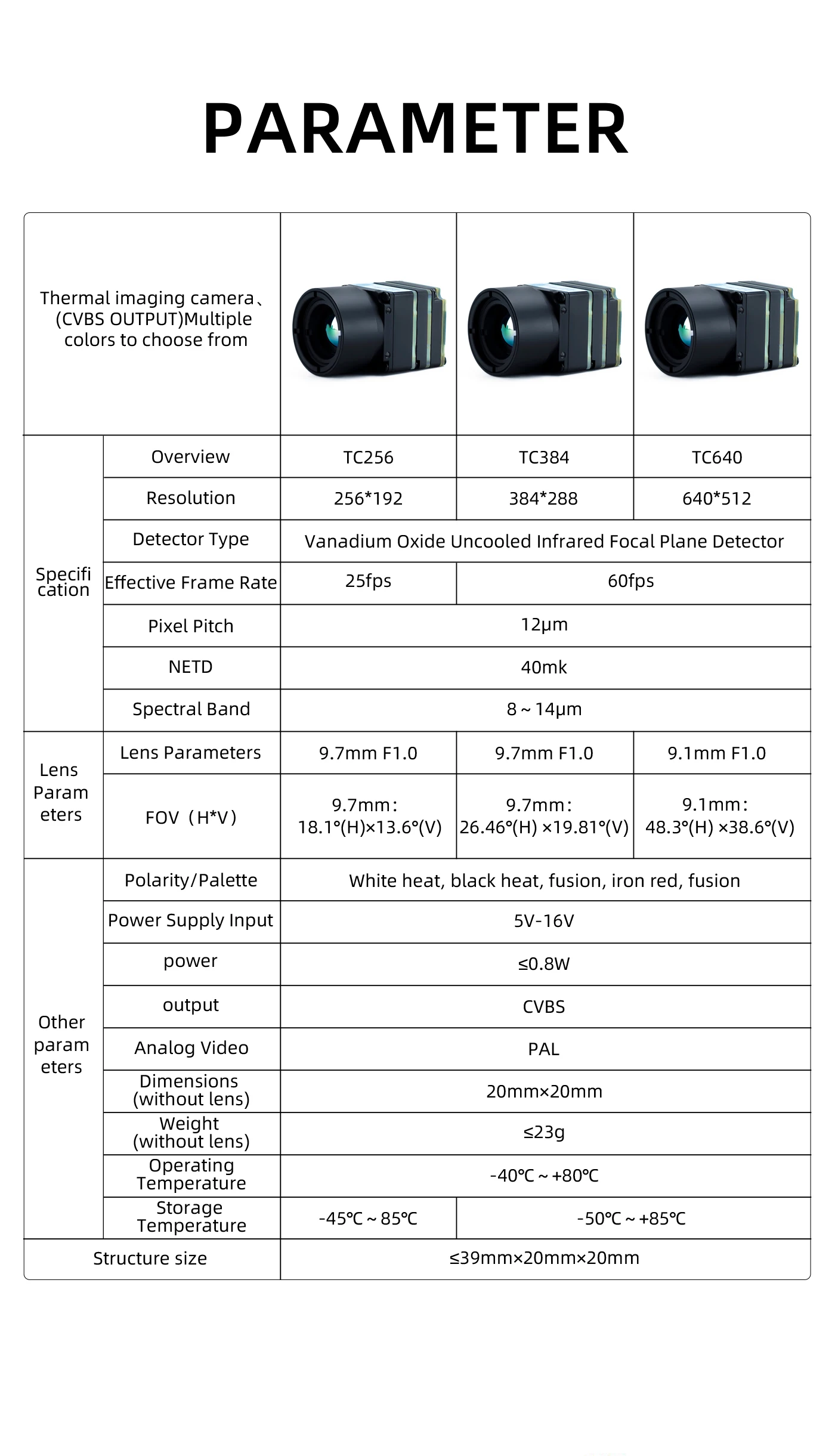 • Detector Type: Vanadium Oxide Uncooled Infrared Focal Plane Detector
