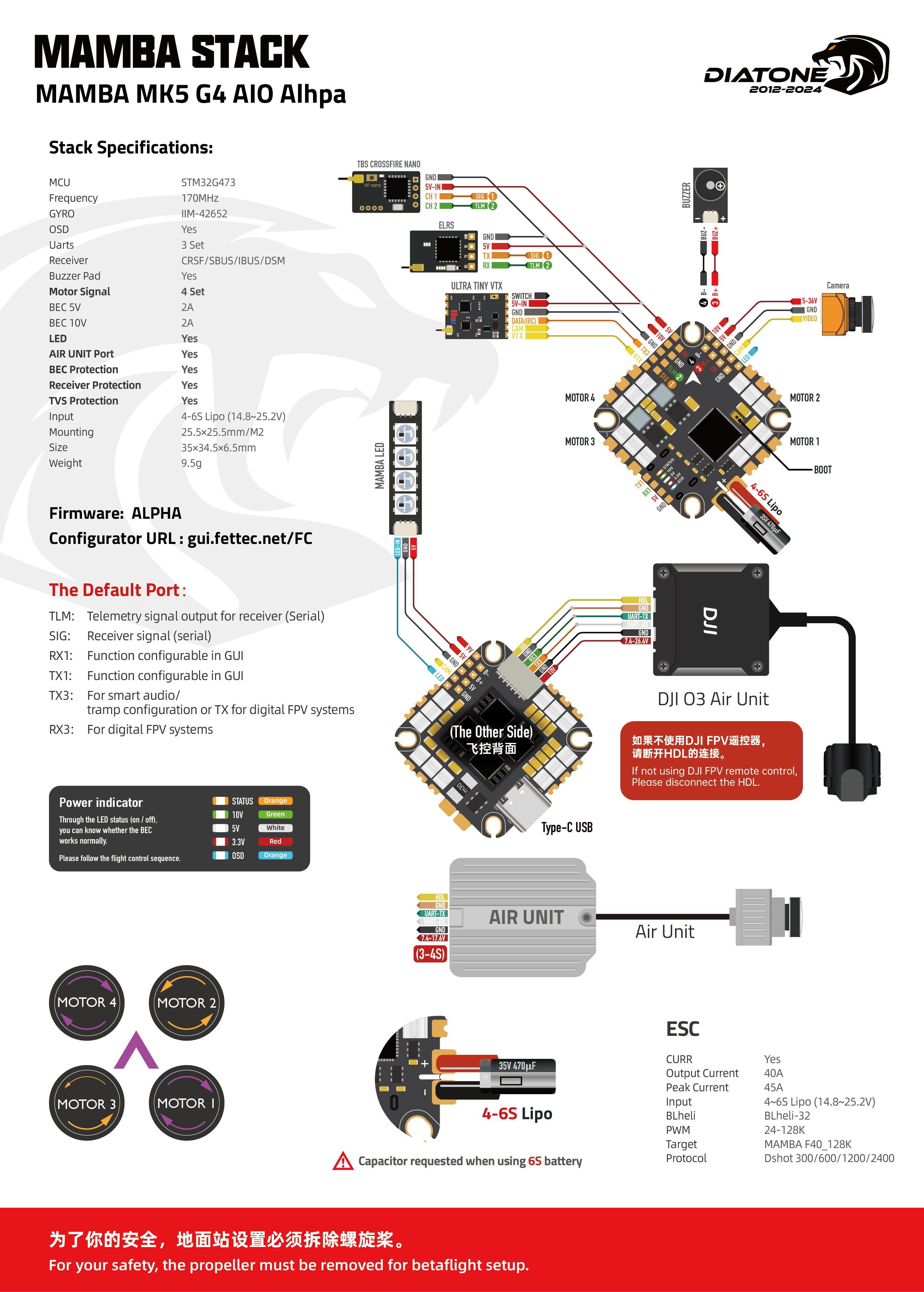 Diatone Mamba MK5 G4 4-6S AIO Whoop/Toothpick Flight Controller w/ 40A 32Bit 4in1 ESC - DSHOT2400